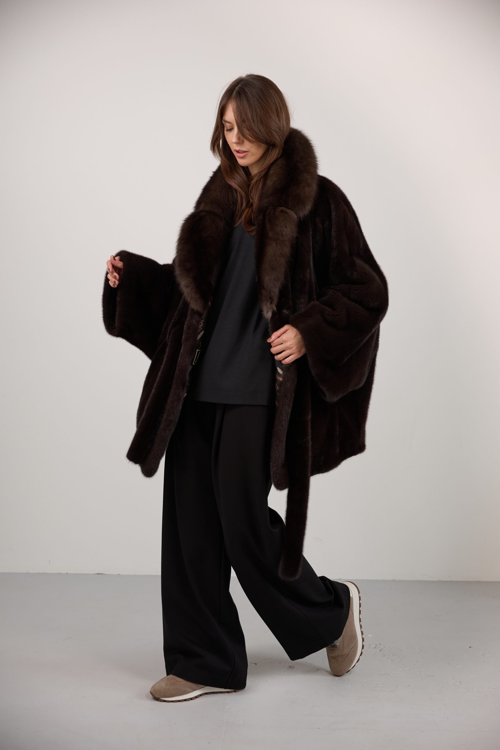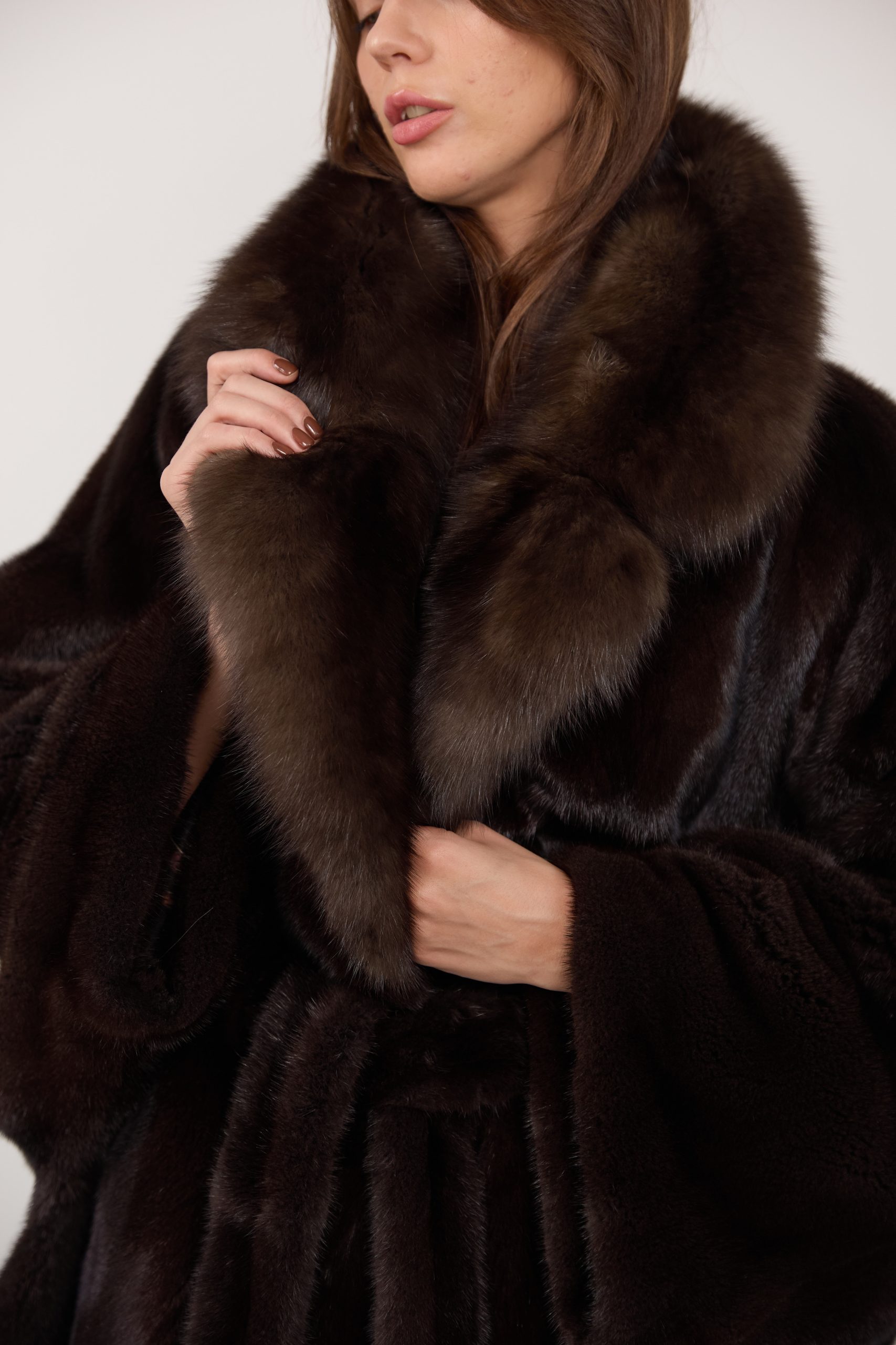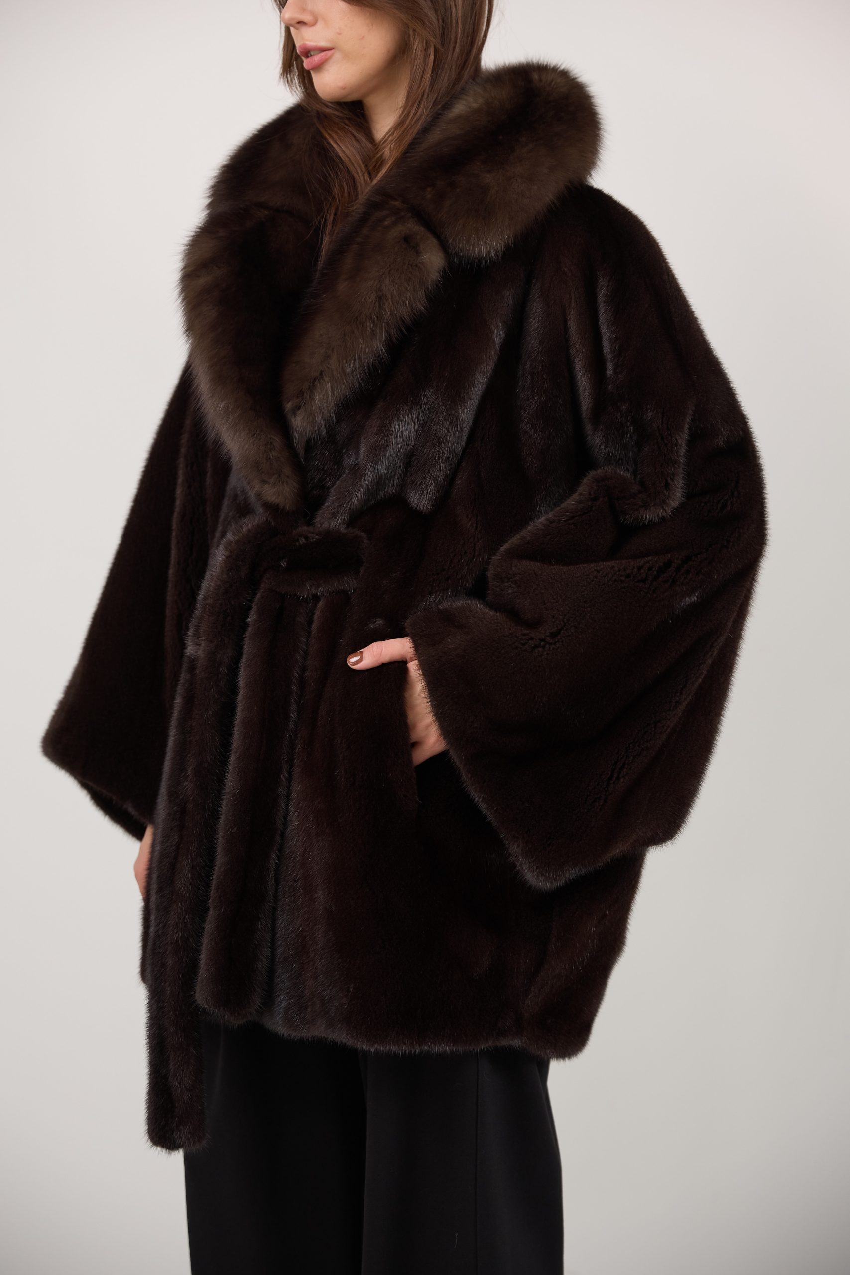 Шуба из меха норки с соболем