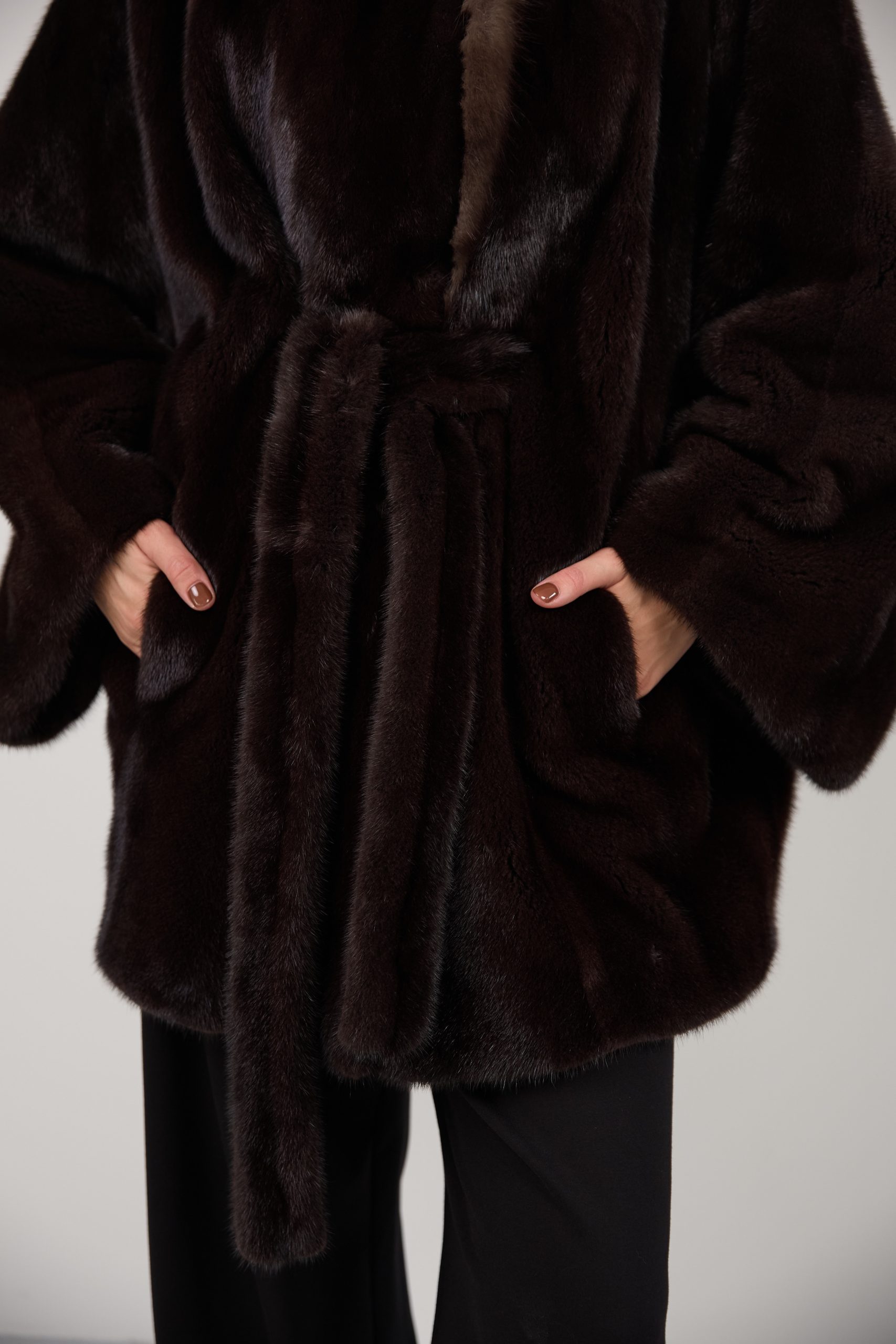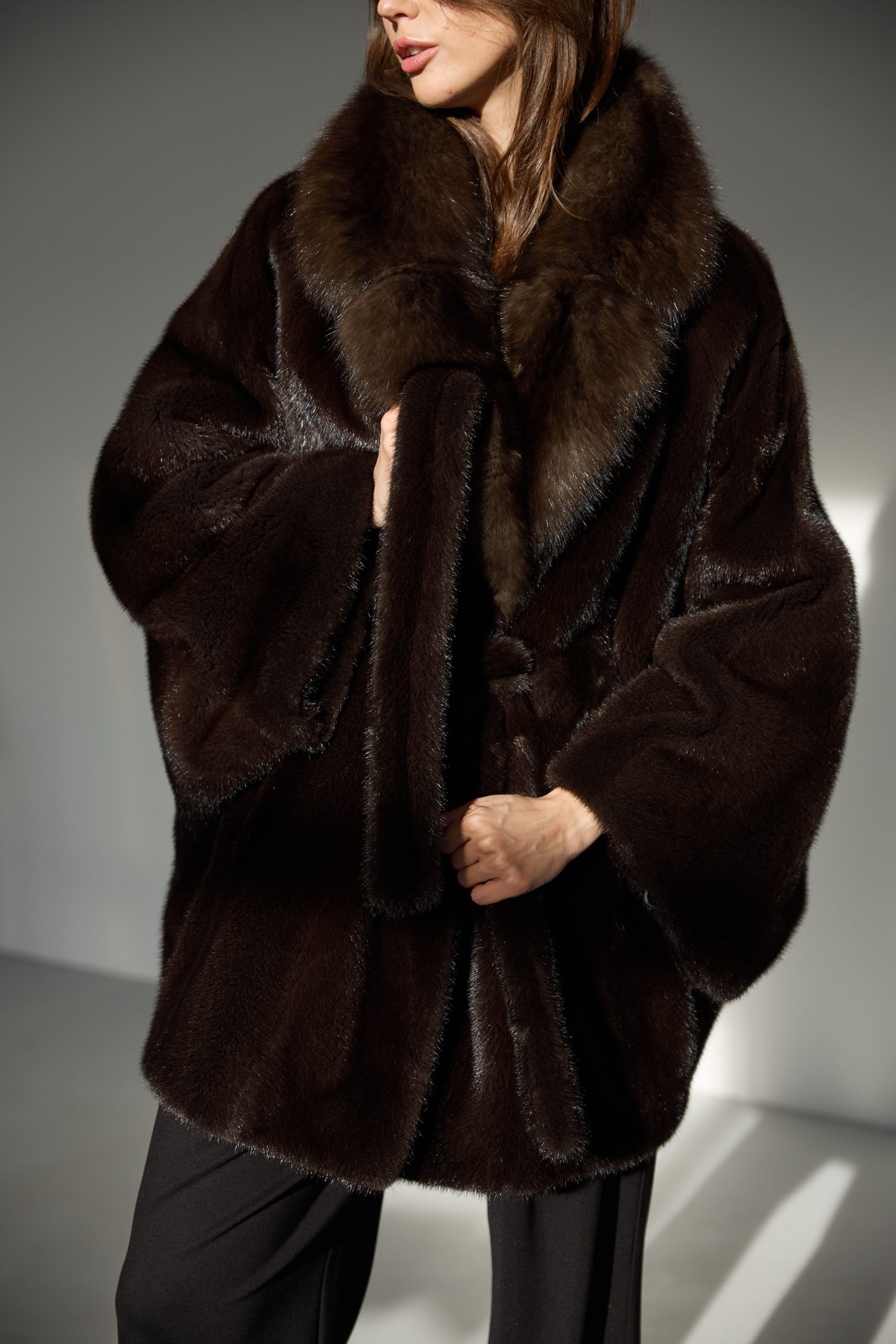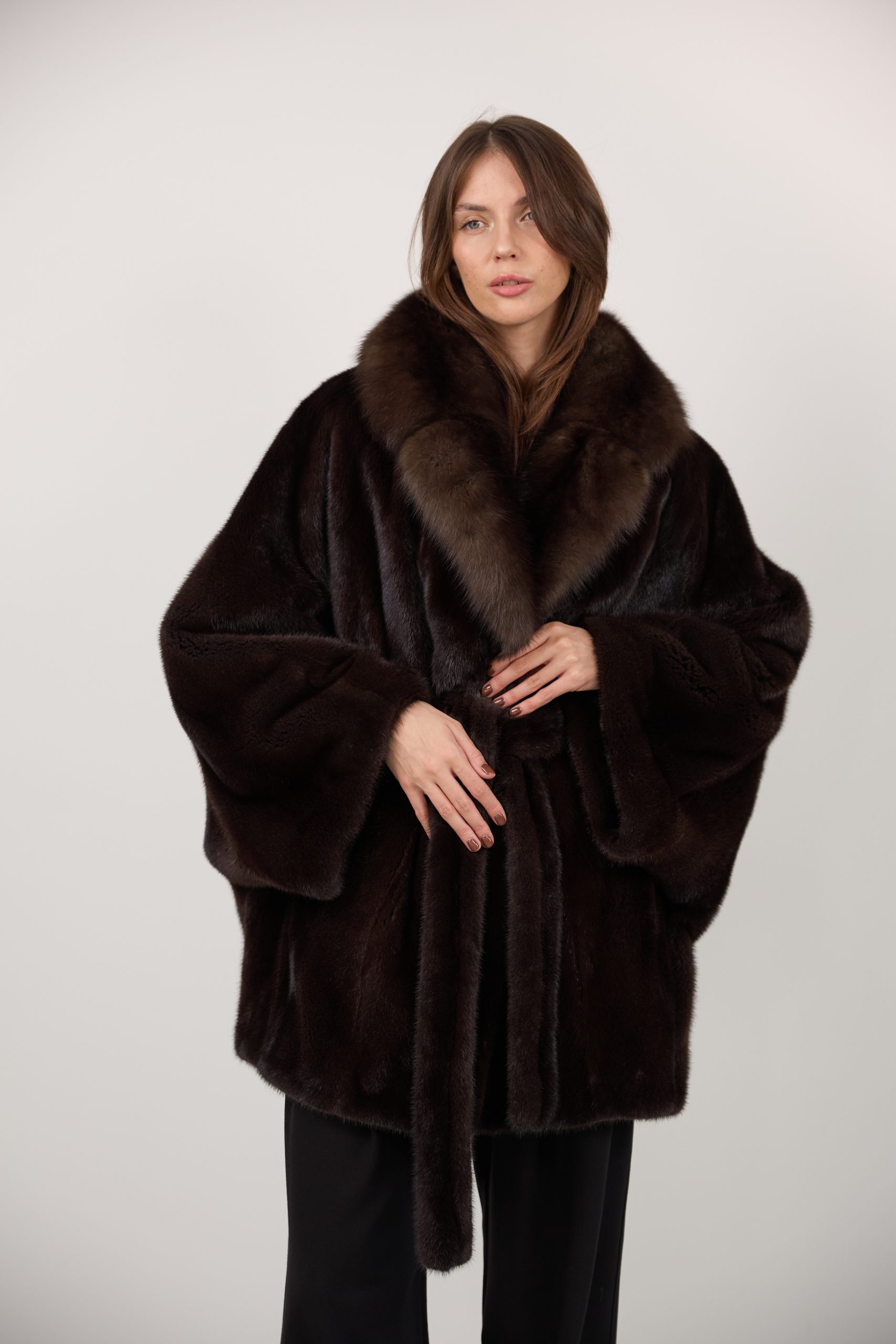 Шуба из меха норки с соболем